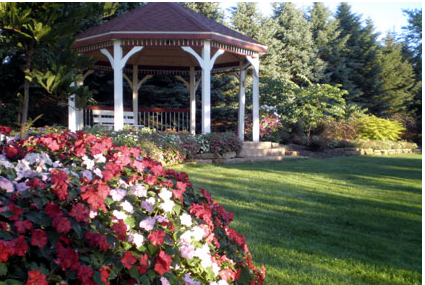 The reception was actually “before” the wedding. Cocktails and a light supper were available as guests arrived. People were free to eat, drink and mingle around the beautiful grounds.