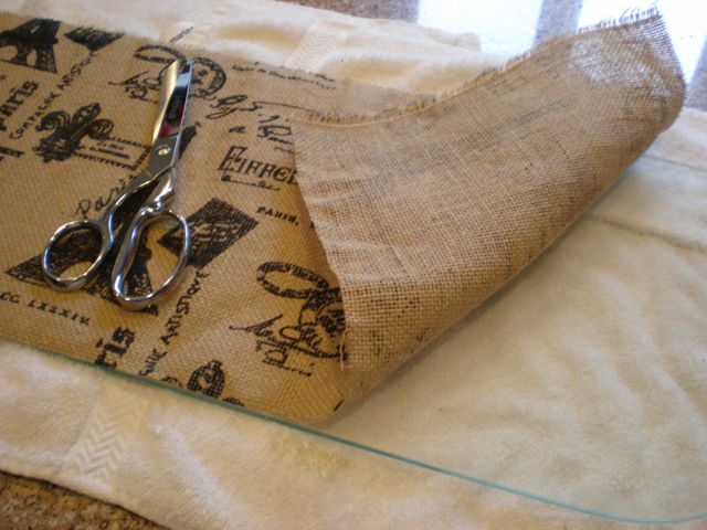 This great printed burlap was only $5 a yard…I love the “Frenchy” look and don’t have anywhere in the house where it seems to fit…..but it was perfect for the upscaling of the baker’s rack!
