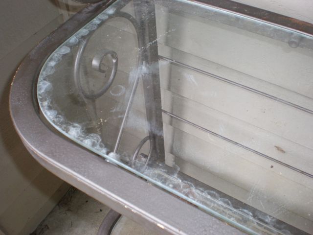 the water drips under the ledge…and the glass gets dusty and grimy and I have to clean it!