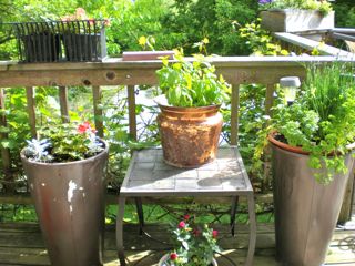 Some greens from the garden…..a few flowers and they look like a sunny windowbox!