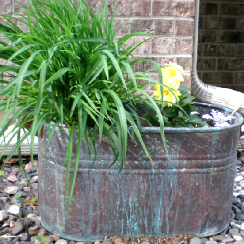 The copper planters are “faux” painted garage sale finds….
