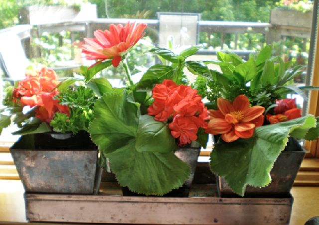 Some greens from the garden…..a few flowers and they look like a sunny windowbox!