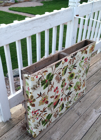 I used some pretty fabric that I had left over to cover up the ugly garbage bag.