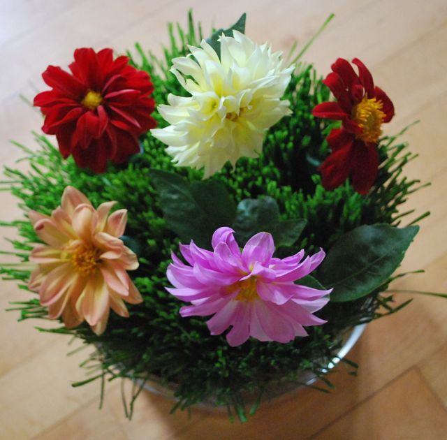 Beautiful arrangement, I love the grass! Thanks for sharing it at Fluster's Creative Muster. Now that you found the party I hope that you'll be joining us again.