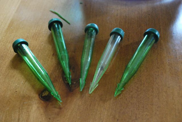 I filled the green thingies with water….added the flower….tucked it into the dirt!