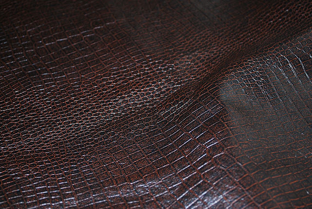 This faux vinyl from Hancock Fabrics was on the sale table. (and I had a coupon). This piece is nice because of the grain and it stretched a bit, making it easy to work with.