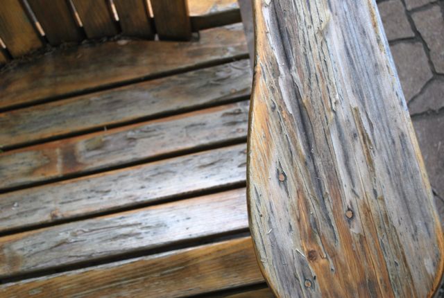 This photo was taken early this summer. I don’t know if you can see how BAD the wood finish is on the furniture….we like to leave them out all year….so the wood really takes a beating in the harsh Minnesota weather!