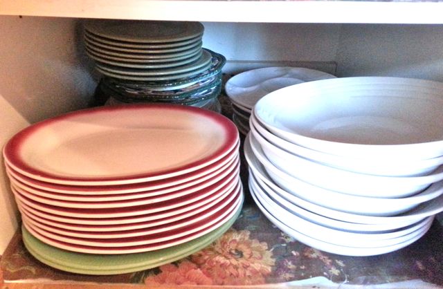 This solution allows me to indulge in my not so secret habit of buying lots of dishes! Look at all that room…..and everything is in one central location! (well….not EVERYTHING….there are a few other cupboards that store some of the dishes that aren’t used on a regular basis!