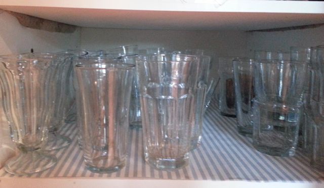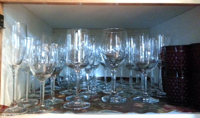 The top shelf has the wine glasses…..the everyday ones in the front….the “fancier” ones at the back.