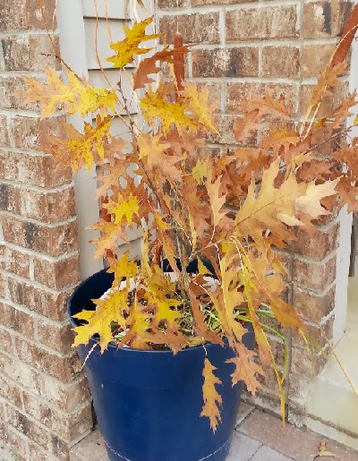 Just the addition of some “REAL” leaves makes the artificial leaves less “Fake Looking”! I couldn’t bring myself to rip out the plants that are still hanging on to summer…..so they are staying until they actually die!