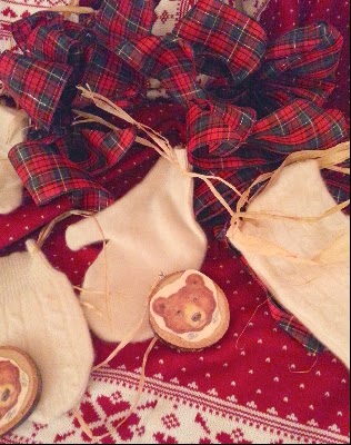 From slices of wood….to cute little ornaments….ust 2 coats of ModPodge…..and an eye hook.