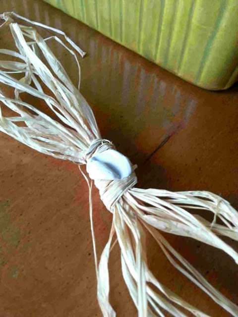 This favorite low Pasta Bowl makes a perfect Wheat Grass Container….the raffia hides another chip!