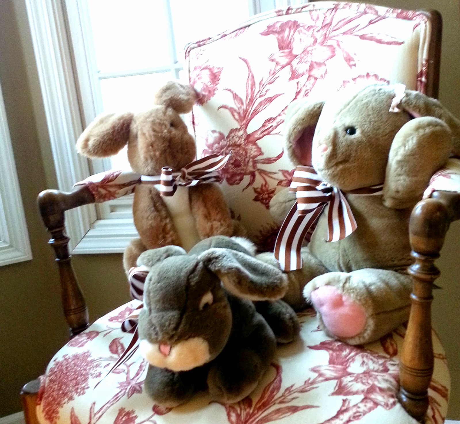 On the chair next to the table there are some stuffed bunnies from when the Sweetwater children were little!