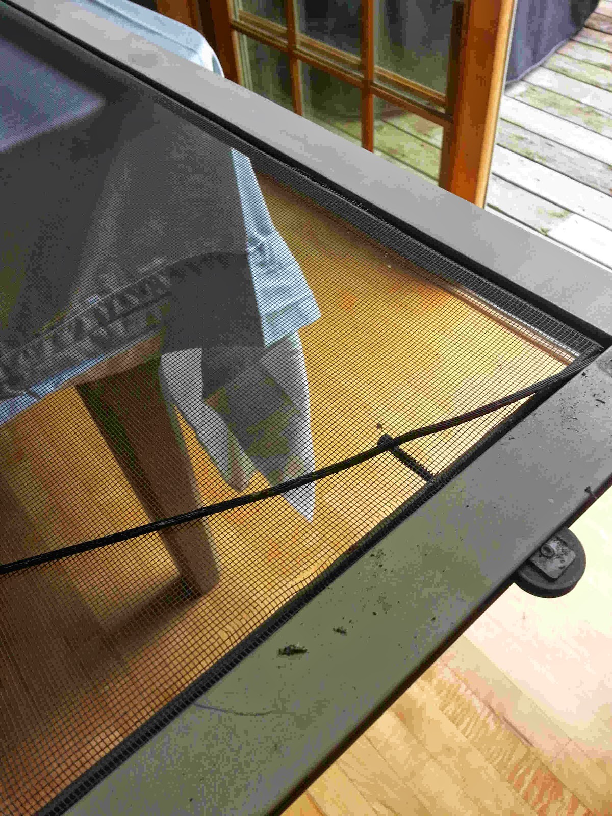 Then….start in one corner and push the spline into the track as you pull the screening tight.