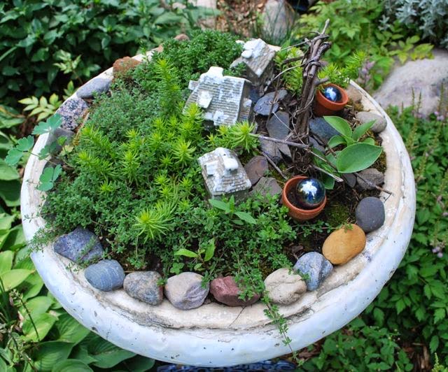 I think I will use some of these ideas in the “front gardent” and the little Fairy Garden in the Birdbath could use a little landscaping too!