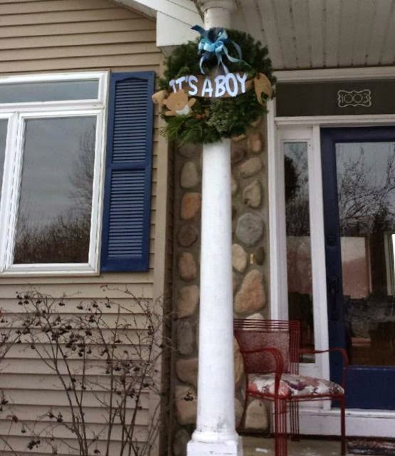 It was fun to CUSTOMIZE this wreath for a unique twist on the traditional balloons on the mailbox announcement of new baby in the neighborhood!