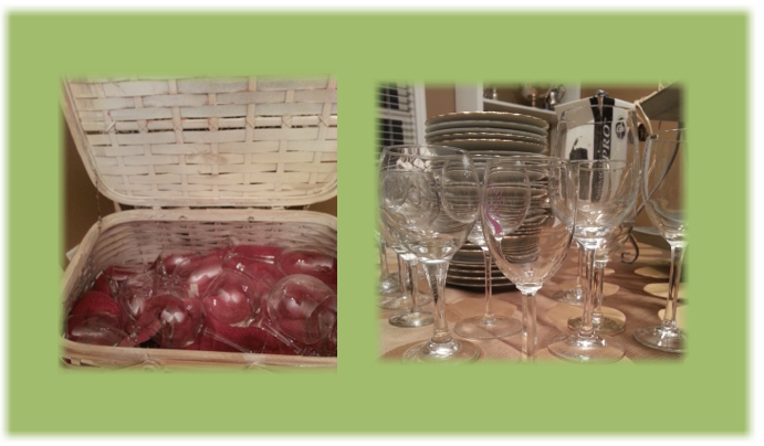 - Because you can set a few glasses out on the table….and set the basket aside to add more fresh glasses as the party goes on!