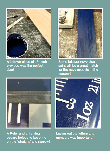 Notice that the bottom of the board starts at 6 inches. This is so it can be hung on the wall and avoid the molding. Besides…..no baby is littler than 6 inches….right? Luckily, this board was long enough to go to over 6 feet. This little guy needs to aim to be as tall as his Dad!