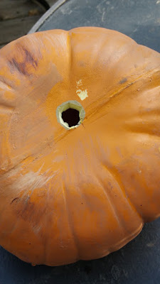 Then insert a dowel (or any stick) that is long enough to go all the way inside and still stick out the bottom of the pumpkin. It is sort of like a giant floral pick!