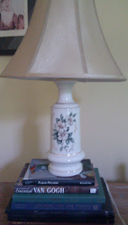 I love the look of the hand painted design on this lamp….the harp on it is just crooked enough to drive my son’s “perfectionist” eye crazy…but it doesn’t bother me!