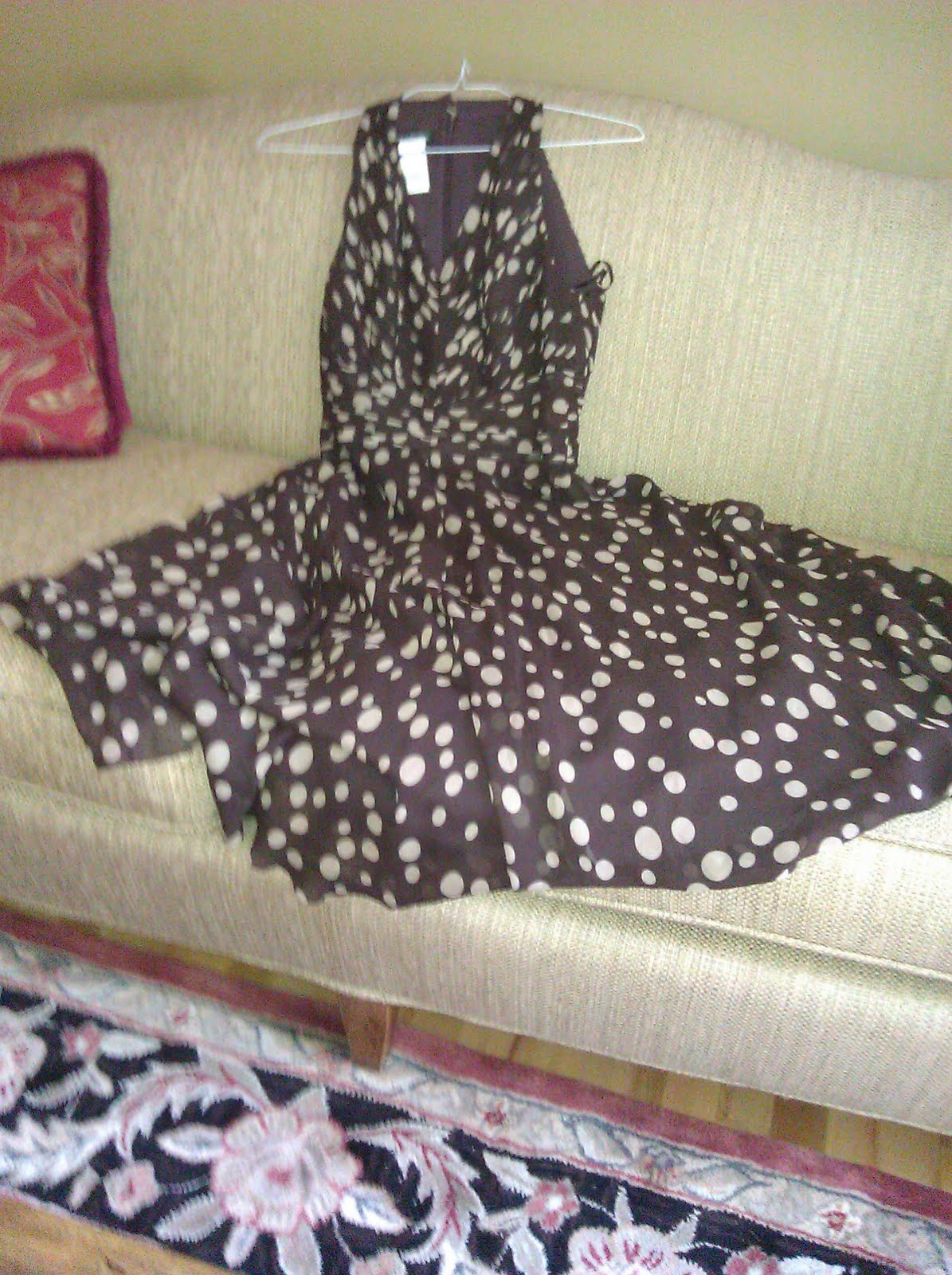 Check out this Jones New York Evening dress. It is just perfect to wear at one of the weddings we are attending this summer. I stopped in at Goodwill one day after some frustrating time in fitting rooms at Macy’s, VonMaur, Opitz and TJMaxx….hadn’t found anything I was willing to spend money on…..The thrift gods must have known I needed them! There it was….just $8.99. I think I will splurge and let the tailor shorten it because it has a rolled hem. Even if it costs $10 or $15 dollars to hem….I still got an amazing deal don’t you think? In fact, I think this might require me to do a little “shoe shopping therapy”!