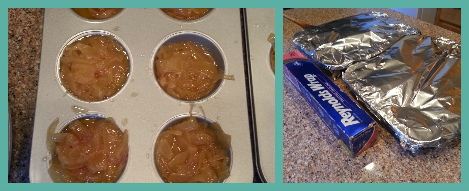 I get out the big muffin tins and put about 3/4 of a cup of the onions in each section.