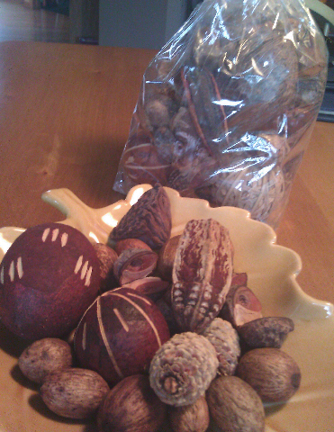 I have this bag of potpourri that I bought on clearance at Home Goods this summer that has lots of great seed pods that I can combine with some grasses from the garden….just need to get out the glue gun!