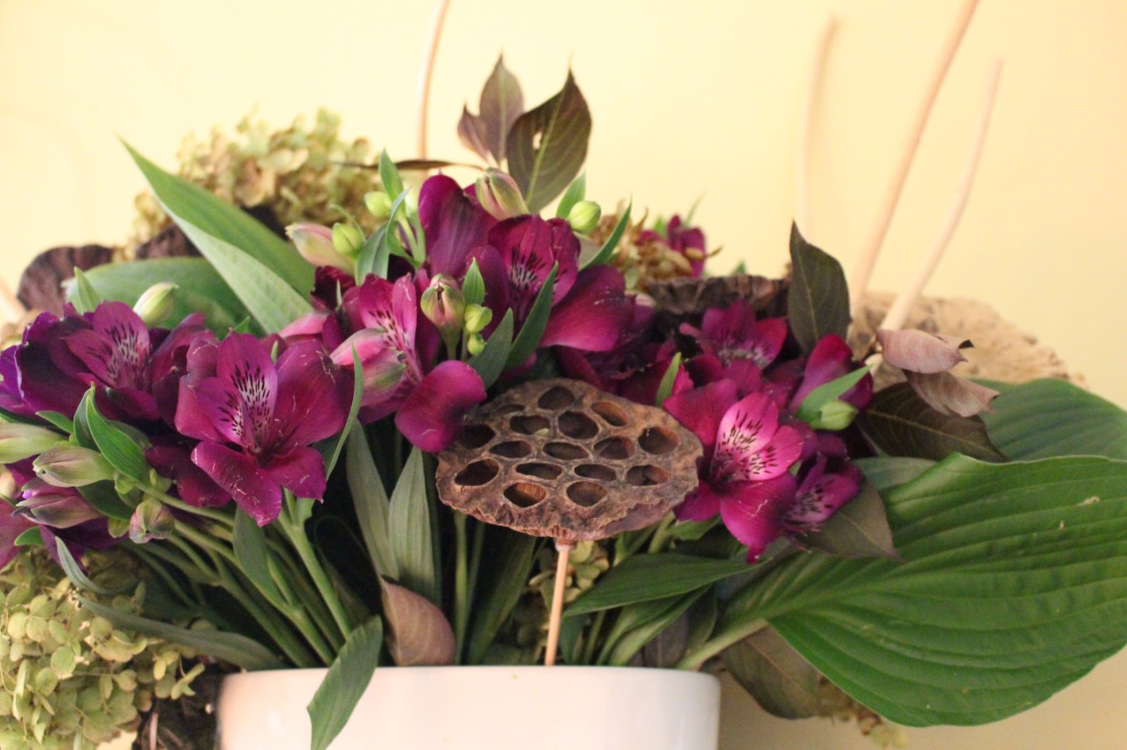 The color scheme included a lot of deep plum. We used lots of deep purple Alstroemeria!