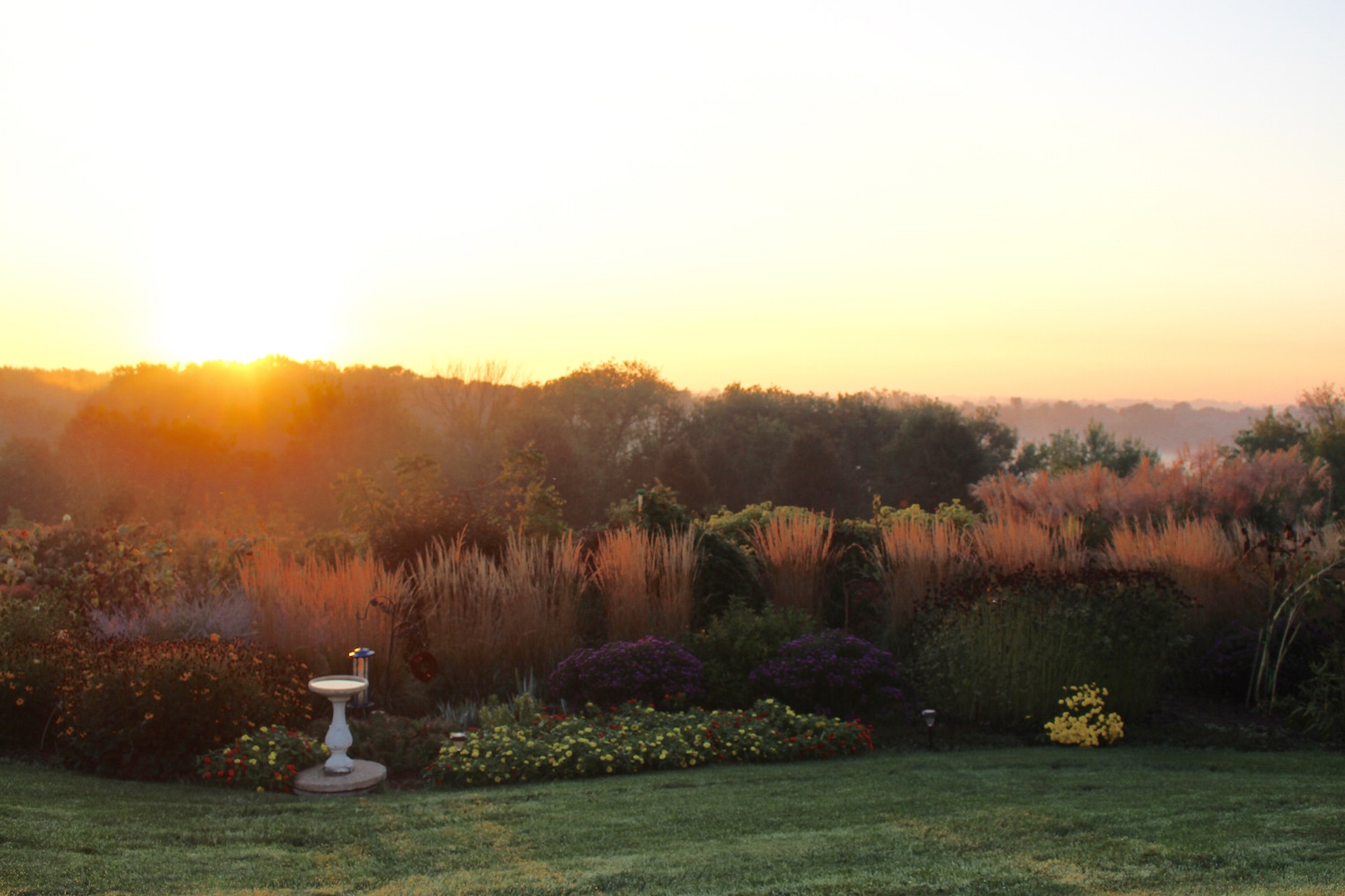 Then….off to bed in the darling little “Granary”.  Saturday dawned with this perfect sunrise!  I was up before almost anyone else…except the Sweetwater Brother who was out and about tending the gorgeous grounds.