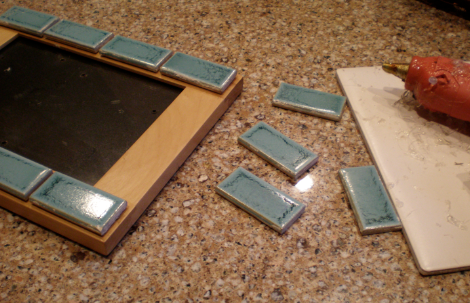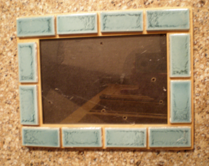 The fun story about the little frame is that the tiles that are glued on to the simple frame are some that I rescued from the school that we worked at together for all those years…..I scored a bucket of these little tiles from the trash when the school was being remodeled….and now JoAnn has a little piece of her history to put on a shelf!
