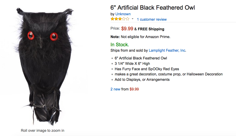 It was really hard to explain to Mr. S that I really needed a black feathered owl!