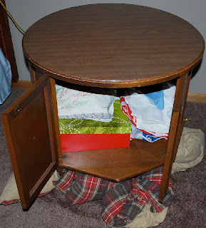 So if you don’t have a round table somewhere in your house….keep your eyes open at garage sales or thrift stores. You could hide one too!