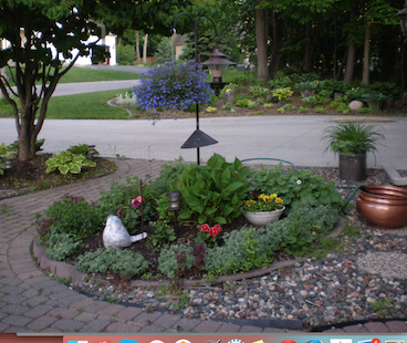 These found “treasures” became new defining borders between the river rock and newly mulched areas.