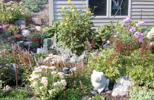 After the rocks were moved and the mulch put down we planted a much edited version of the garden.