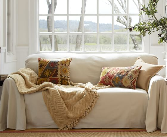 This is a cover from Pottery Barn that is drop cloth weight…..hmmmm….bet it would be pretty simple to drape and tuck something like this!