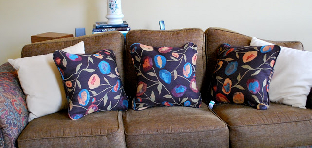 I made big form fitting (like really tight!) tubes of fabric for each of the six cushions!