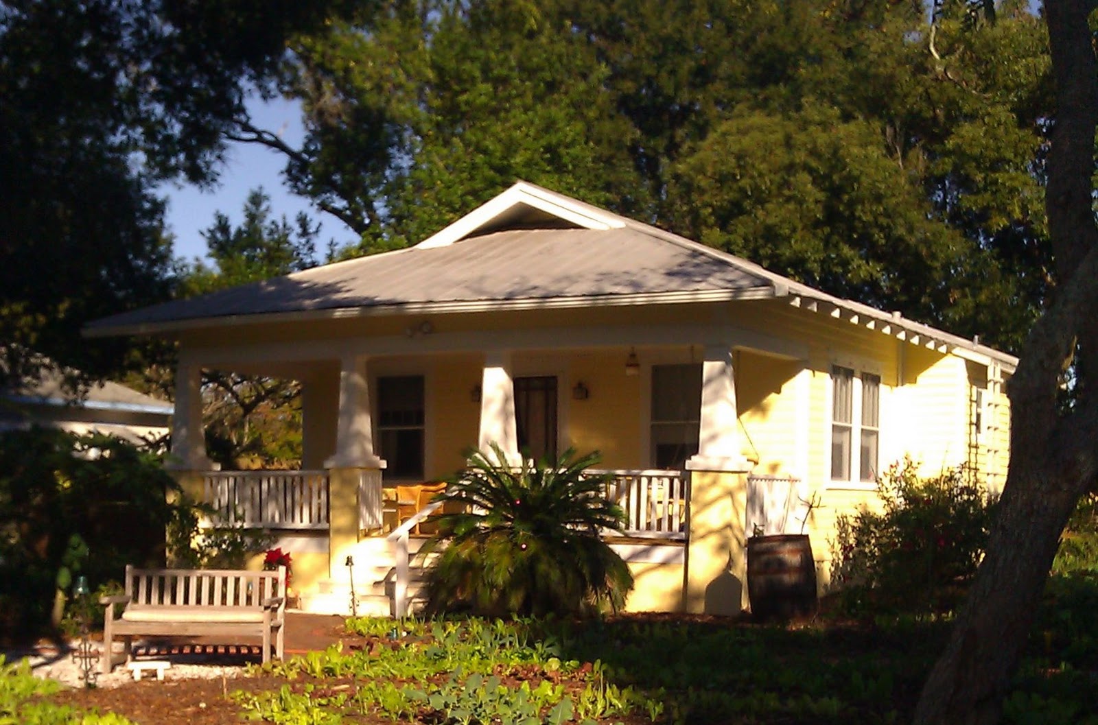 The porch is a great place to view the beautiful front yard filled with all the organic produce being cultivated by my brother the Permaculture expert….