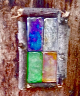 HMMMMM……I had some glass tile leftovers from a past project….perfect for Stained Glass Fairy House Windows.