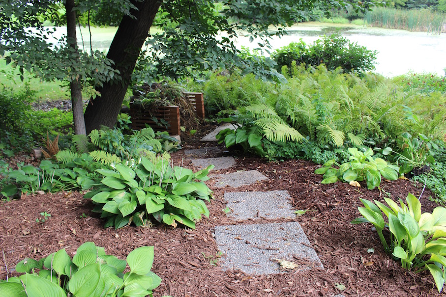 The landscapers used their muscle and expertise to lift and place them in a new path to the compost bin.