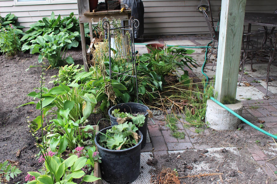 Once again….we did the prep work of digging up all of the plants we wanted to save to put back or move to other gardens.