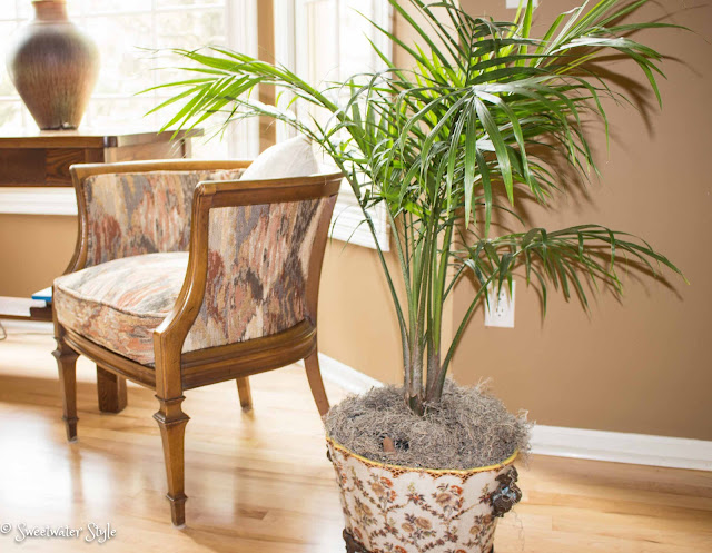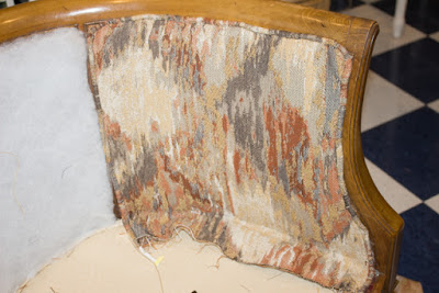 It has a caned back which made it simple to just make a new cushion cover to fit with the decor.