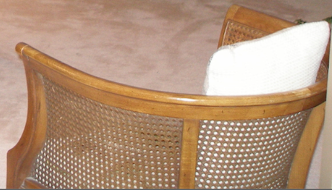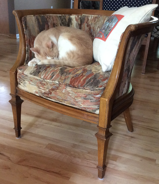 Alas….Marvin has decided that the caned back of the chair is a terrific scratching post!!!