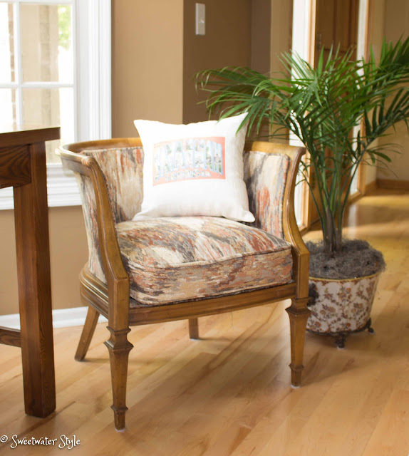 We have a nice little chair here that originally came from the thrift store.