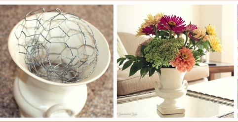 Using chicken wire is a cost effective alternative to floral foam. It is not as easy to work with, but it makes a strong support grid for stems.