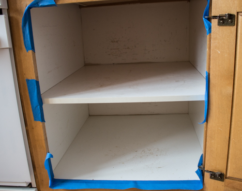 There really isn’t a lot of need to do much masking…and a little bit of newspaper was enough to keep the area around the single cabinet free from drips.