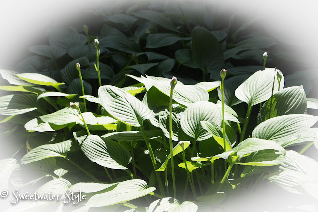I do love all the gorgeous leaves of the many kinds of Hosta.