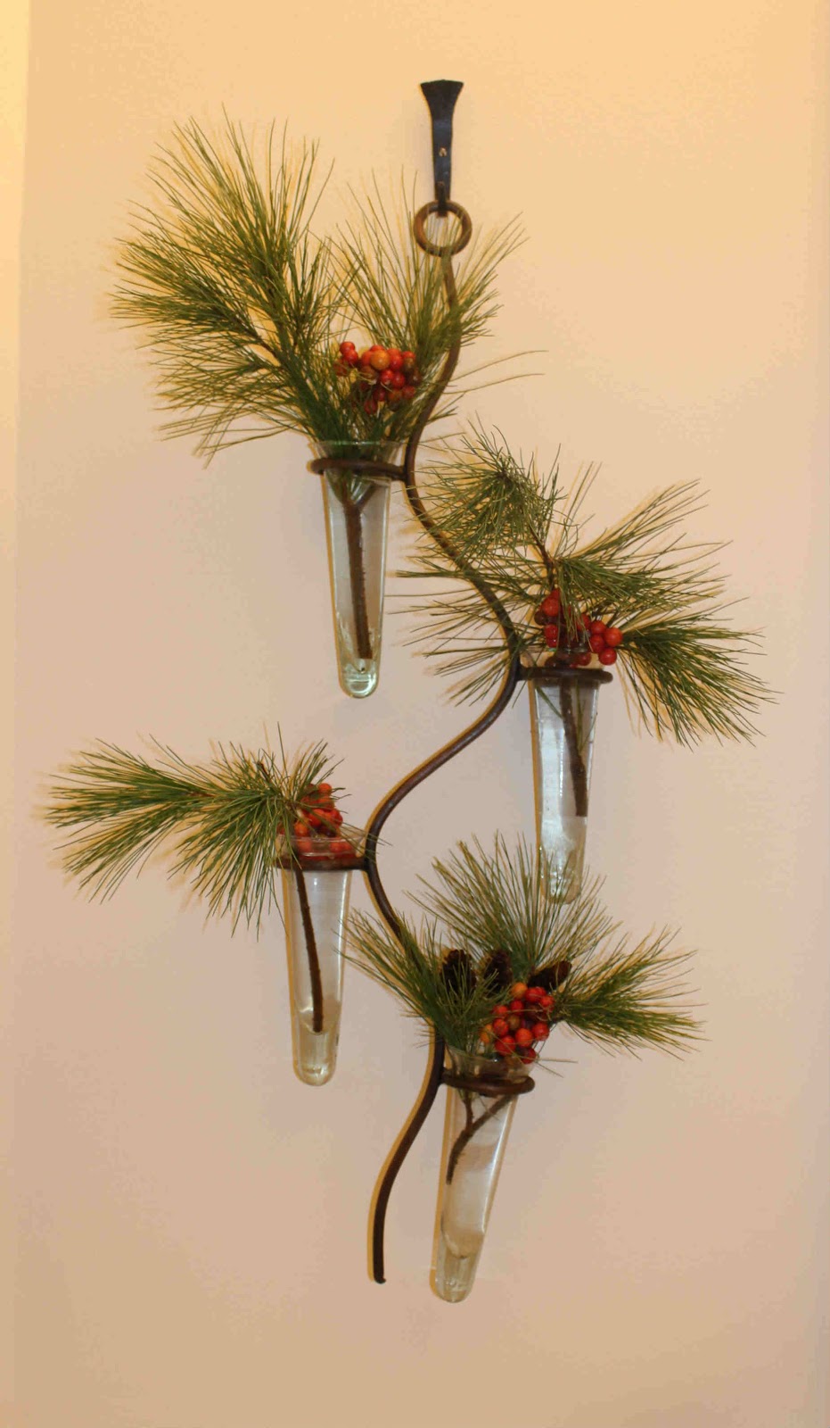 This nice little decorative sconce with glass vases hangs on the powder room wall.