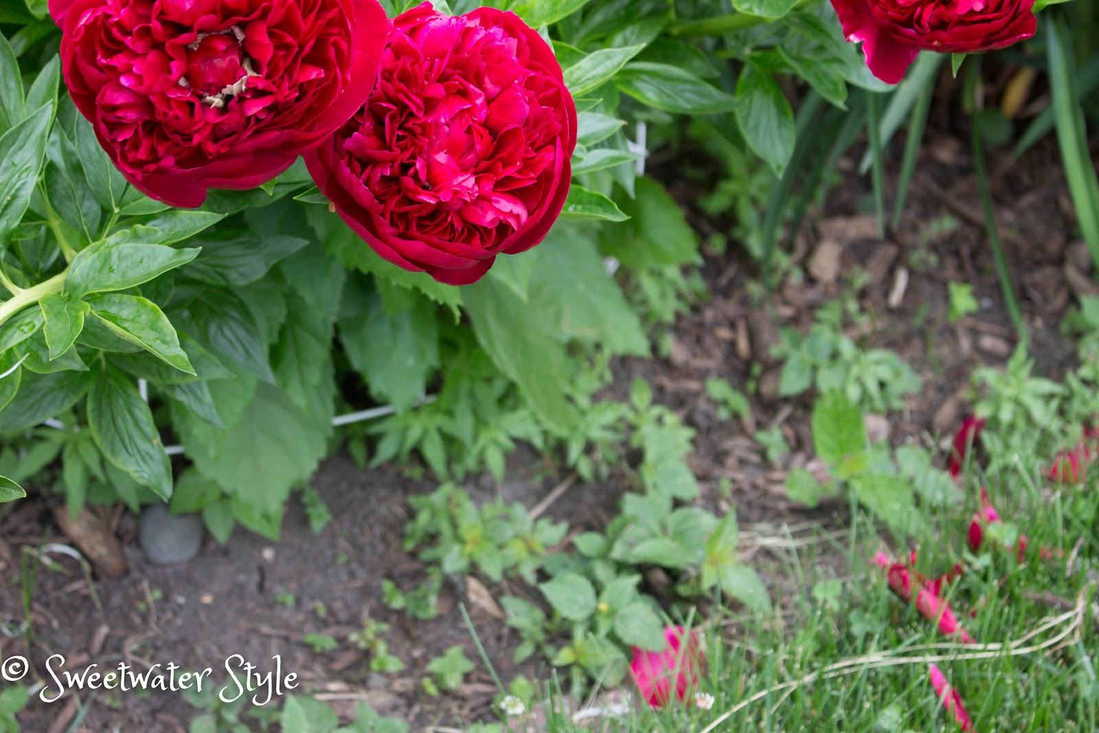 We have such a crop of weeds (Snow on the Mountain) that we actually put landscape cloth down to kill it! The problem is that we can’t spray too close to the peony plants and there was no way to get to all of the weeds….I am simply not that patient.