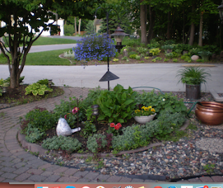 The front edge of this garden now has a planting of native prairie grasses that will thrive in the poor soil…..and…hide some of the messy planting until we can get in and re do it!