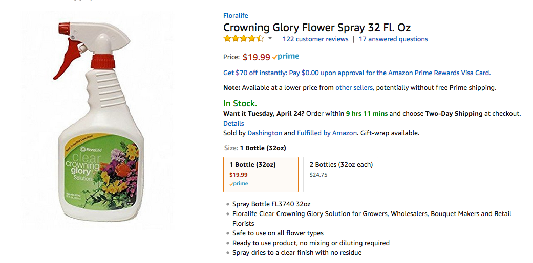 It might seem like a lot to spend…..but if it keeps your expensive flowers looking good for more than a week….it is worth it.  A little goes a long way too.